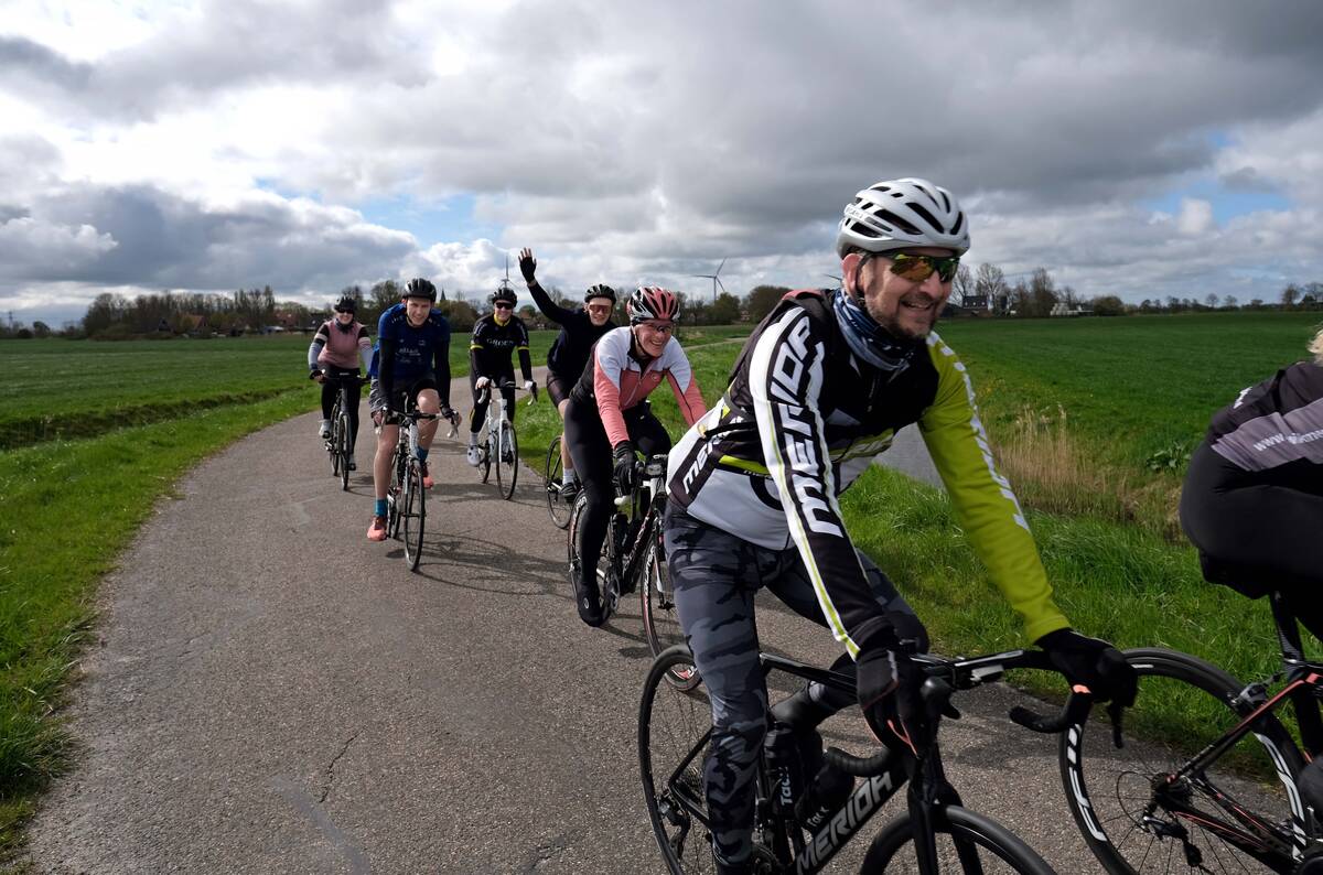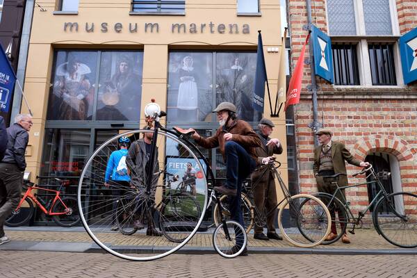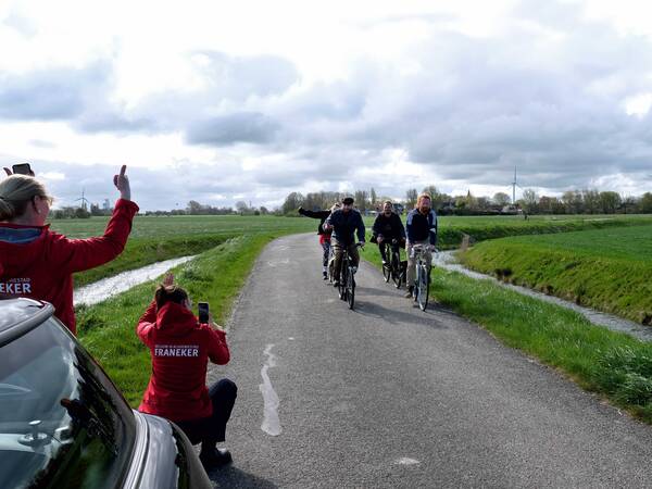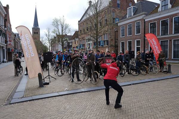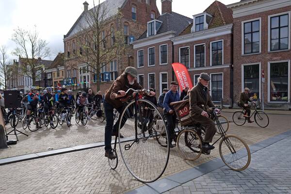 Wat was het een geslaagde ochtend en middag! Om 10:00 fietsten alle deelnemers, onder de feestelijke melodie van het Fietslân nummer 'Blauwe Fyts' van Jilt Heidstra, weg vanaf de Voorstraat. Het was een spectaculair aanzicht: aan kop een tiental 'oude' fietsen, met daarachter de moderne racefietsen, e-bikes en normale trappers.