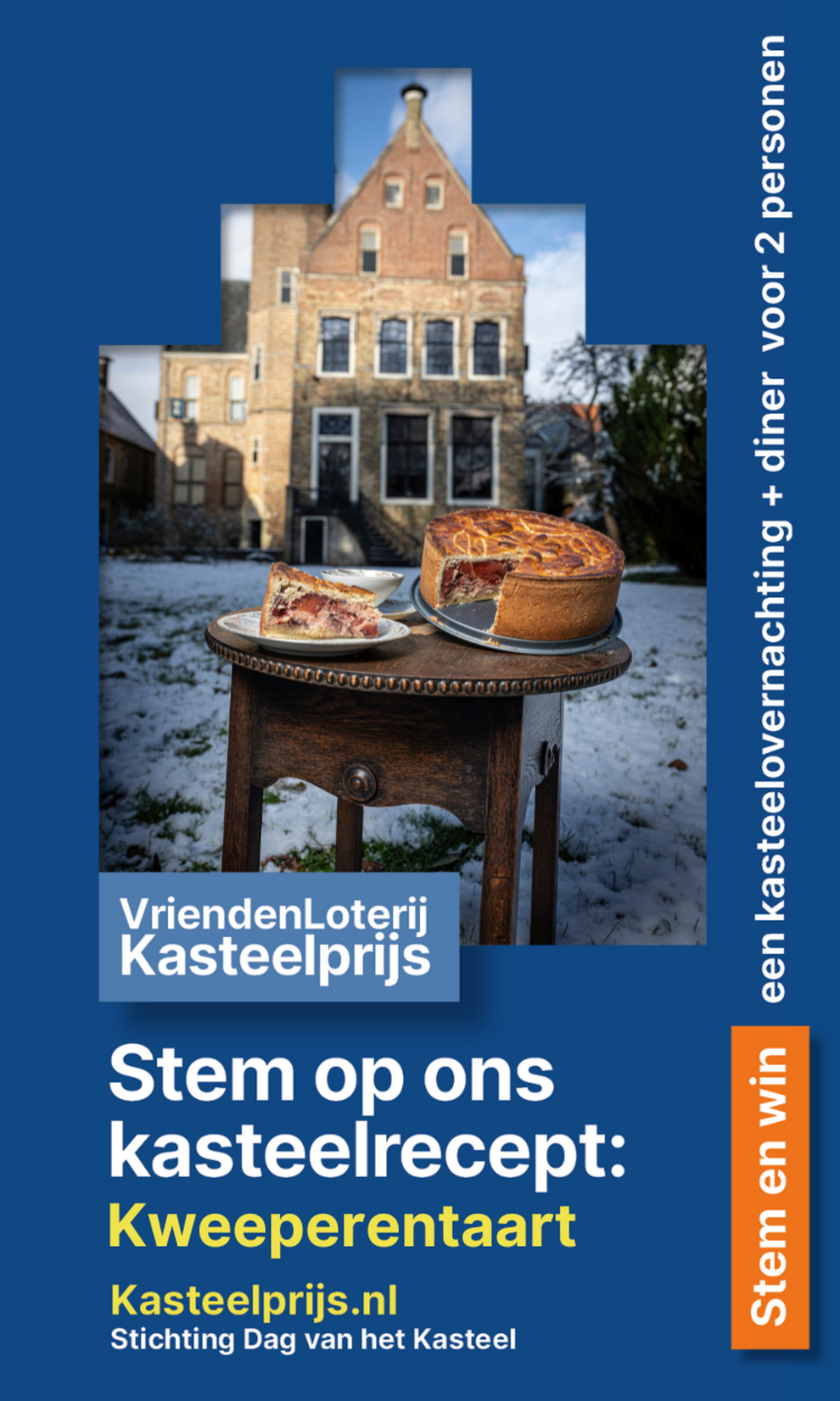 Wij zijn dit jaar samen met 9 andere kastelen en buitenplaatsen genomineerd voor de Vriendenloterij Kasteelprijs 2024. Dit jaar is het thema 'Aan Tafel' en wij hebben een overheerlijk kweeperentaartrecept ingestuurd!